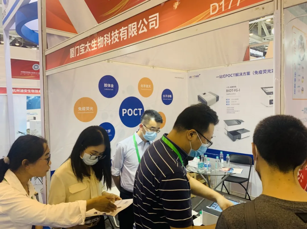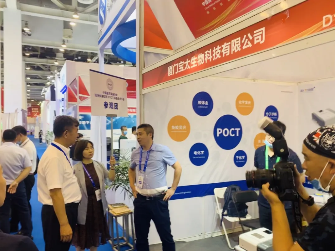 展會(huì)現(xiàn)場(chǎng),快速檢測(cè)(POCT)裝備技術(shù)分會(huì)王清濤會(huì)長(zhǎng)帶領(lǐng)參觀團(tuán)蒞臨寶太生物展臺(tái)進(jìn)行指導(dǎo)工作,并給予了寶太生物創(chuàng)新產(chǎn)品高度的肯定。同時(shí),寶太生物D177展位承接了POCT實(shí)操培訓(xùn)及考核工作,讓醫(yī)療從業(yè)者POCT操作人員直接動(dòng)手操作寶太生物熒光免疫定量分析儀,現(xiàn)場(chǎng)感受POCT的方便、快捷。